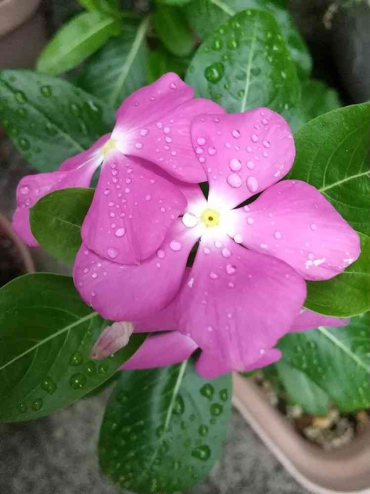 夏の終わりにこぼれ種のニチニチ草咲き始めてくれました🤗🍀今朝は少し雨が降っていたようです