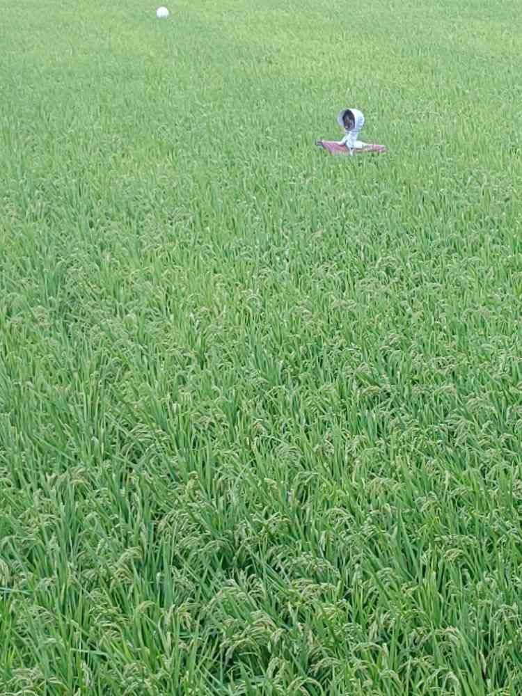 窓を開けるとこの景色って、良いなあ。稲穂が垂れてきているね。