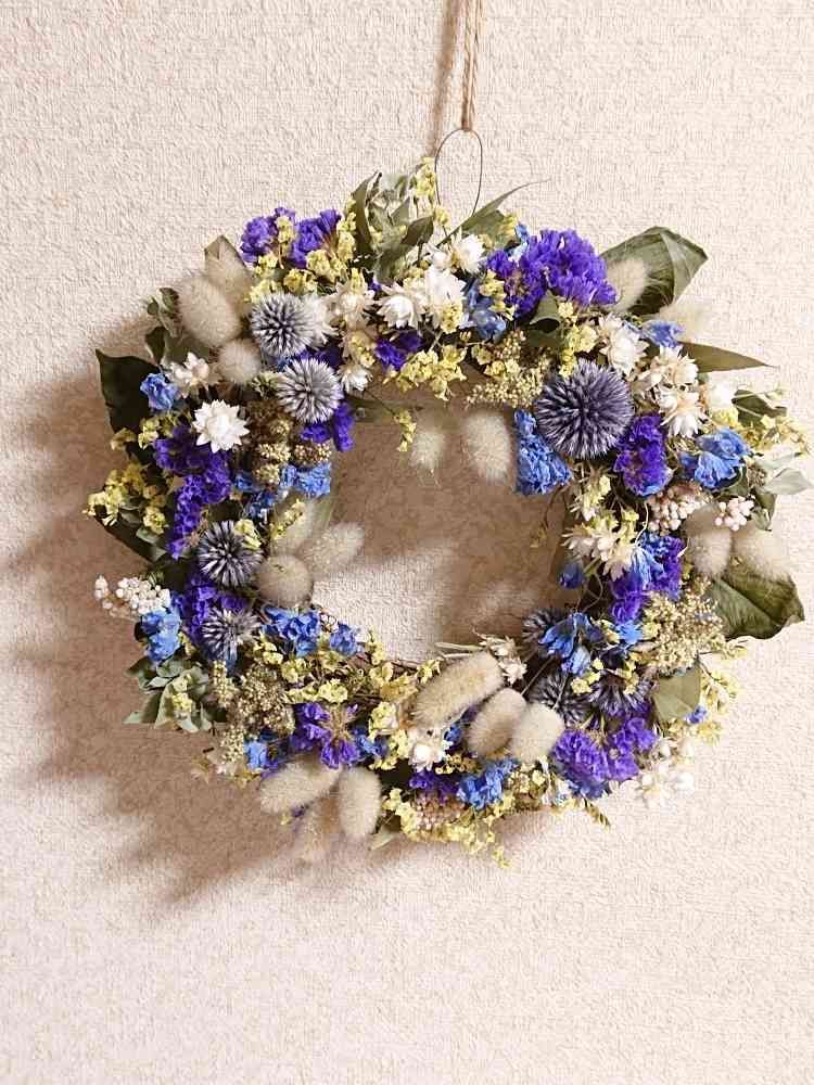 ドライの青が爽やかなリースですね。とても素敵です❣️