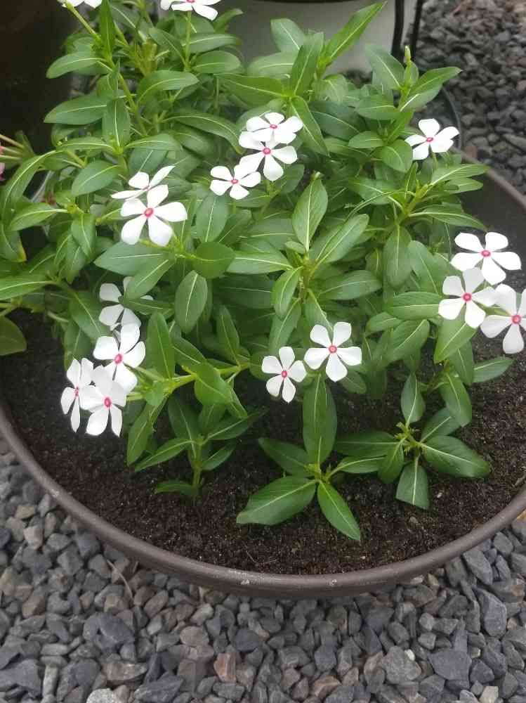 ニチニチソウがモリモリしてきたので、一回り大きな鉢に植え替えました。