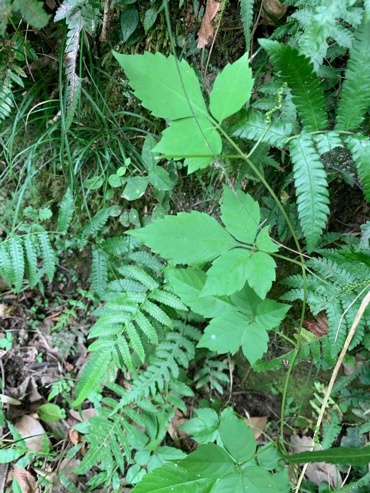 これは紫がかってないからアマチャヅルかと思ったけど、葉と逆向きに巻きひげ出てるからヤブカラシかな。