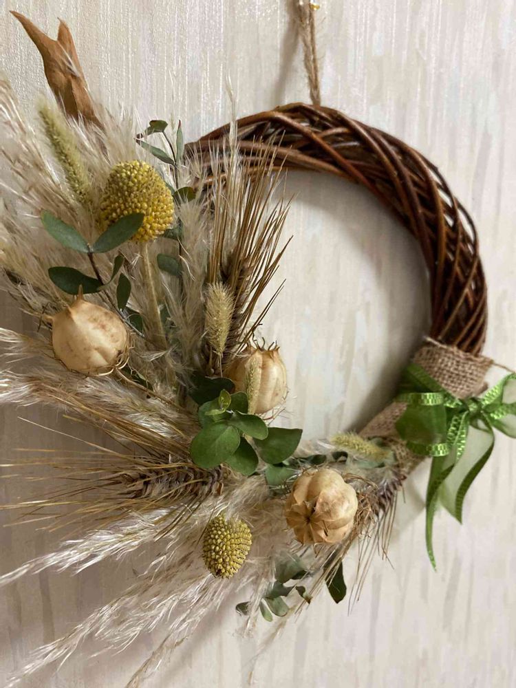 ニゲラ、ユーカリ等、今年初めてドライフラワーに挑戦して出来たものです。