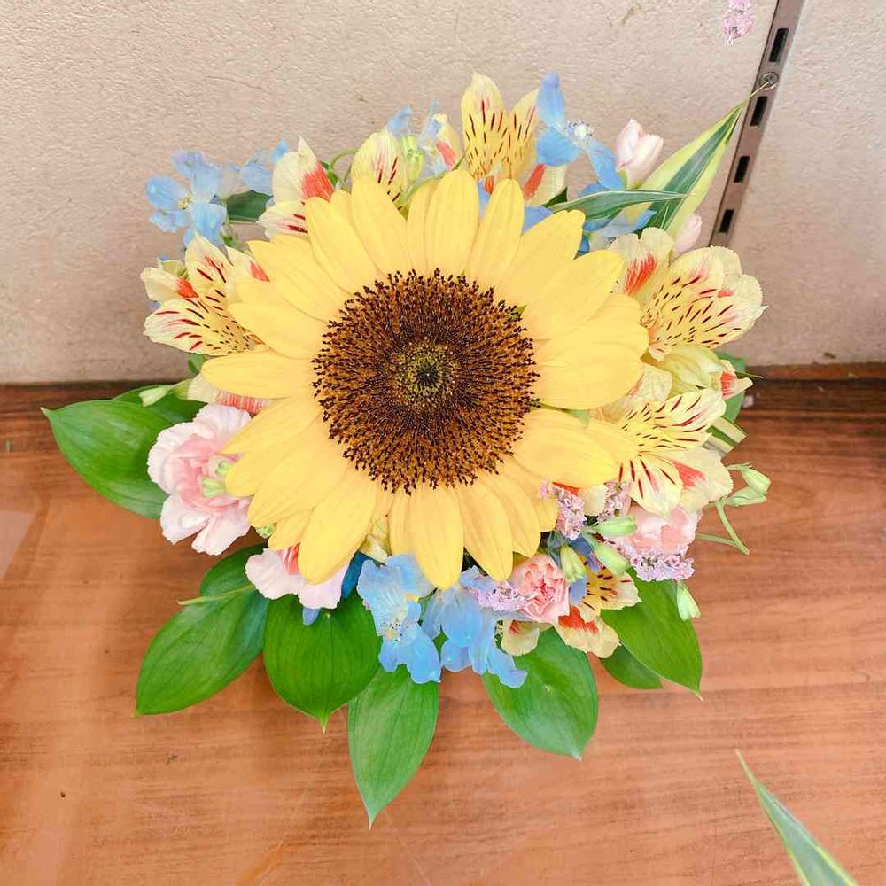今日もまだまだひまわり❗️のアレンジつくりましたよ♪今回のひまわりは大きめ。