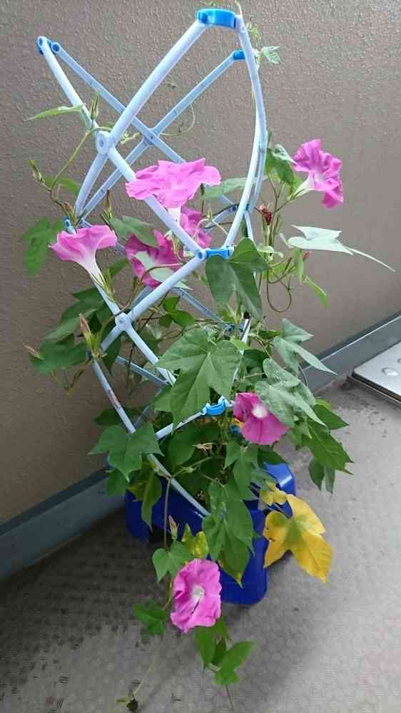下の青い鉢はうちの子と同じっぽいけど、支柱が近未来⁉