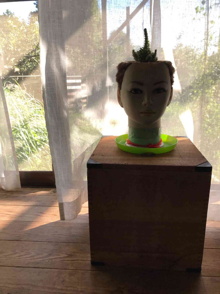 つんつんちょんまげは日照不足が原因と教えていただき、南の縁側に移動しました。縁側のこちら側で夜寝ている息子が、夜中起きたら体育座りしてる人がこっちを見ていて怖かったと言ってました。
