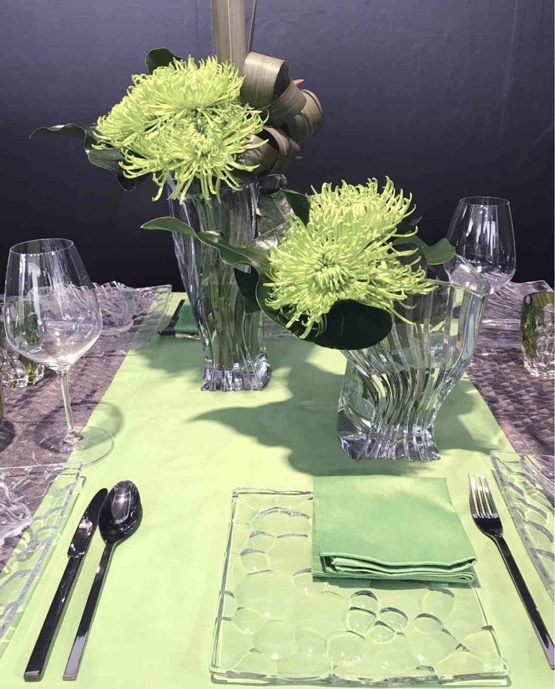 菊のグリーンに合わせてのテーブルセッティングお洒落ですね。