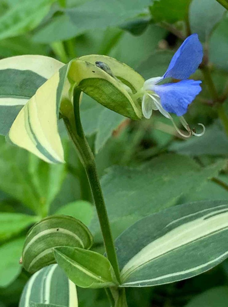 斑入り露草🌱道端に咲いてるんですか。見てみたいです。よく見かけるオーソドックスな露草と花の大きさなど同じぐらいなんですか。