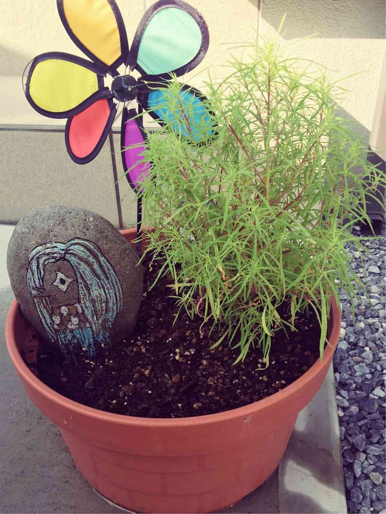 夫が植えたコキア。なんだか寂しそうだったのでアマビエを置いてあげた^_^