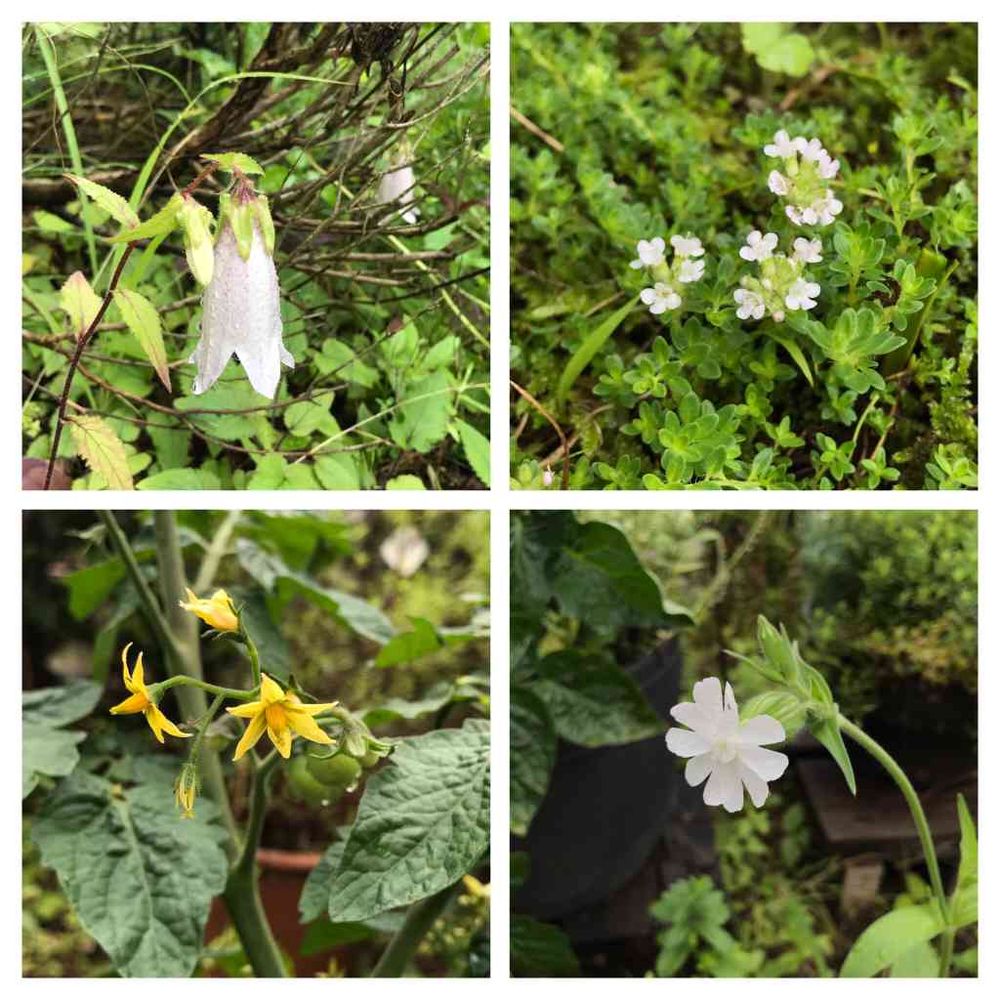 右下はナデシコ科マンテマ属(シレネ)の何かだと思います。