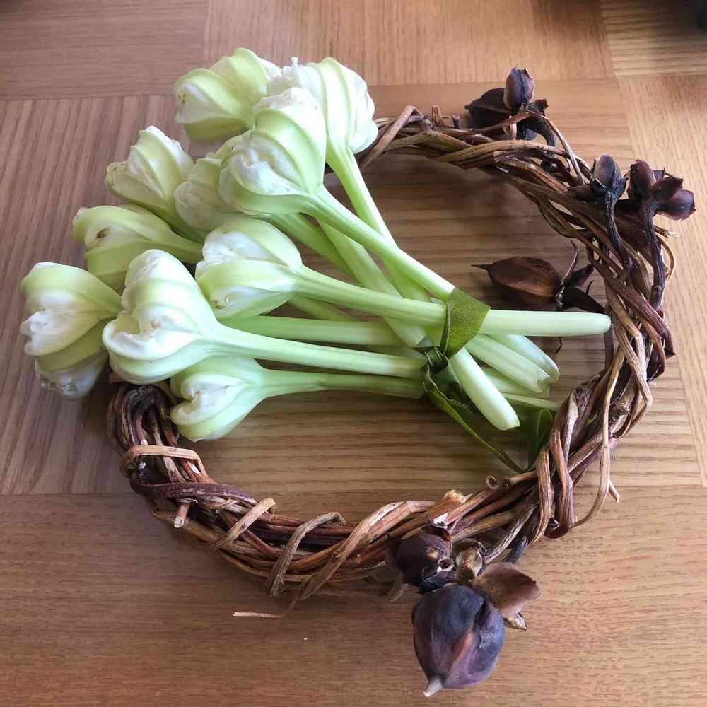 新鮮なニンニク🧄はこんな形してるんですね😆夜の暗がりに見るのも幻想的で素敵なんですよ😁楽しみ方がいろいろあるのでぜひぜひ育てて見て下さい😉