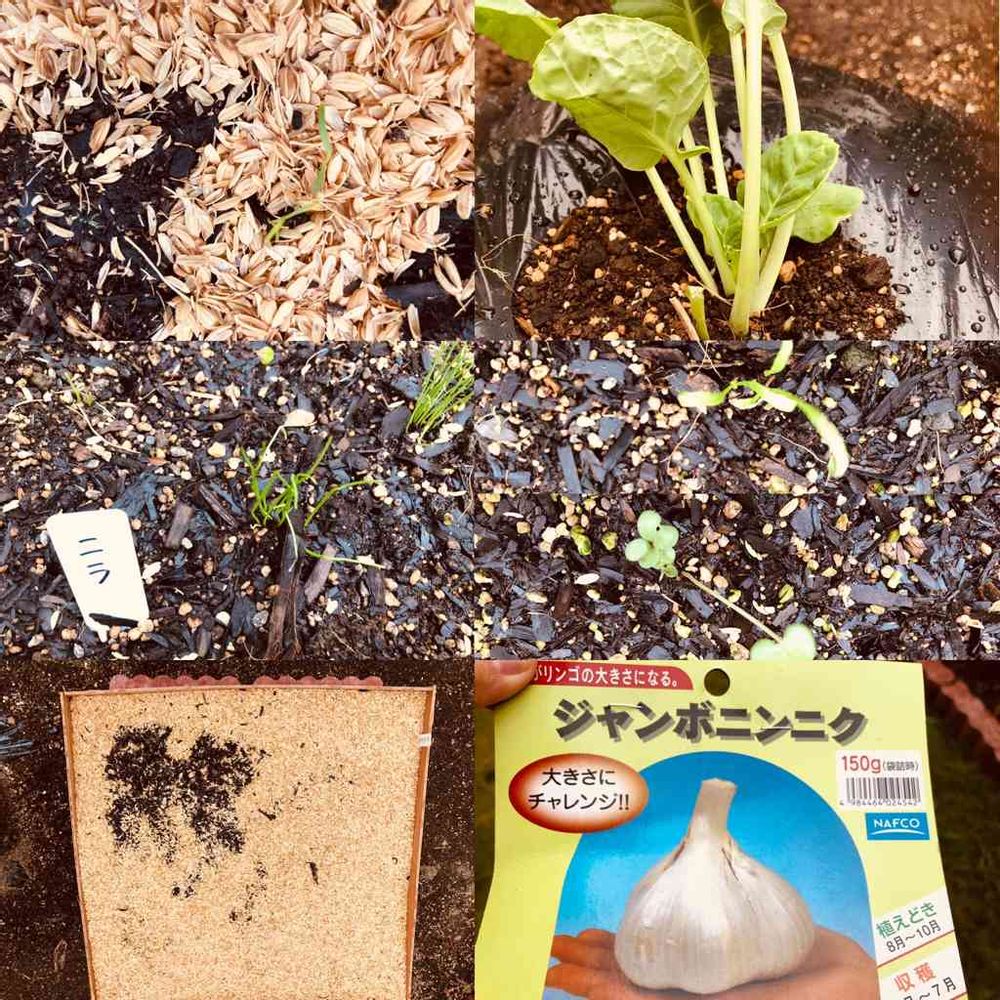 人参とニラとブロッコリーの芽が出ました🌱次いでに芽キャベツ、ジャンボニンニクも植えつけてみました!庭のトマト🍅の支柱が台風で飛ばされないか心配で撤去しました😣台風後の庭がどうなるのかとっても心配です。どうかみんな生き残りますように✴︎