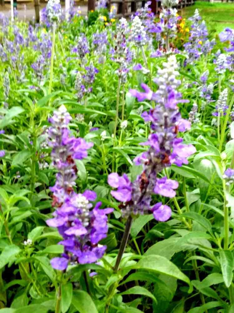 今朝の散歩道で、みさと公園の花壇のお花が、綺麗でした。