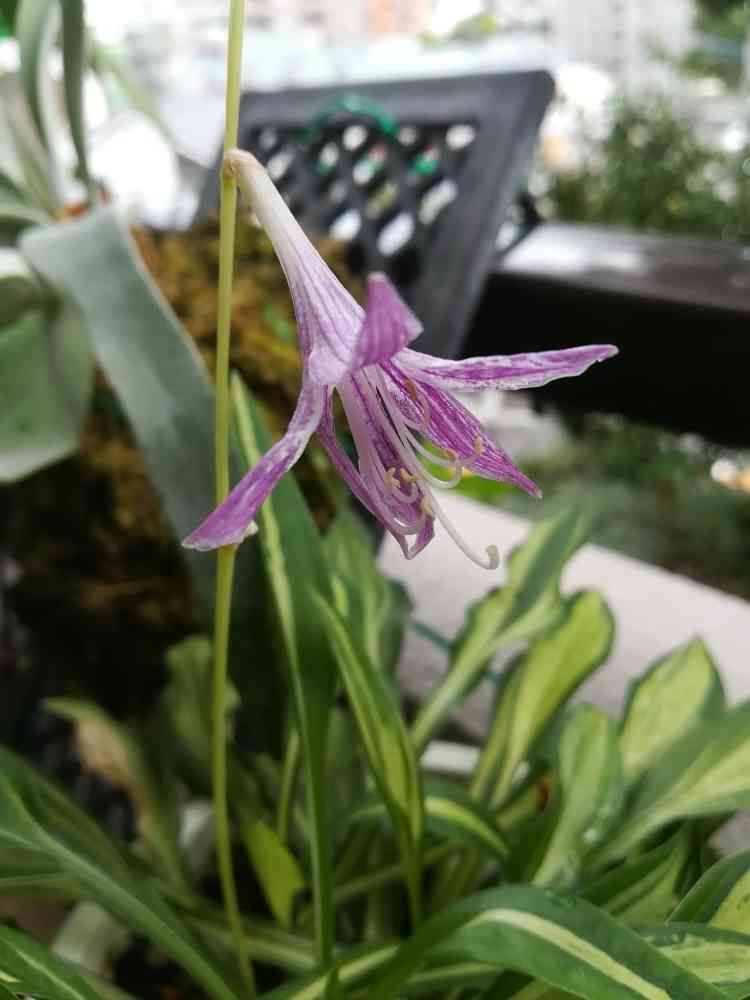 7月半ばにお迎えした名無しの乙女ギボウシに花が咲きました。花にも斑が入ってお気に入り🎵😍