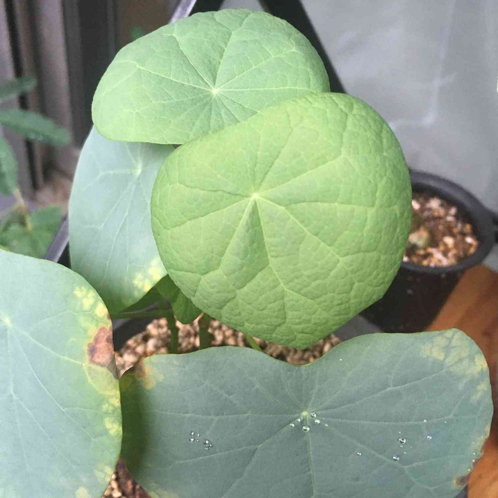 あまり変化のなかったスベローサ、同じ茎の大きな葉は傷みだし隠れていた小さな葉がぷわっと成長し始めました👀