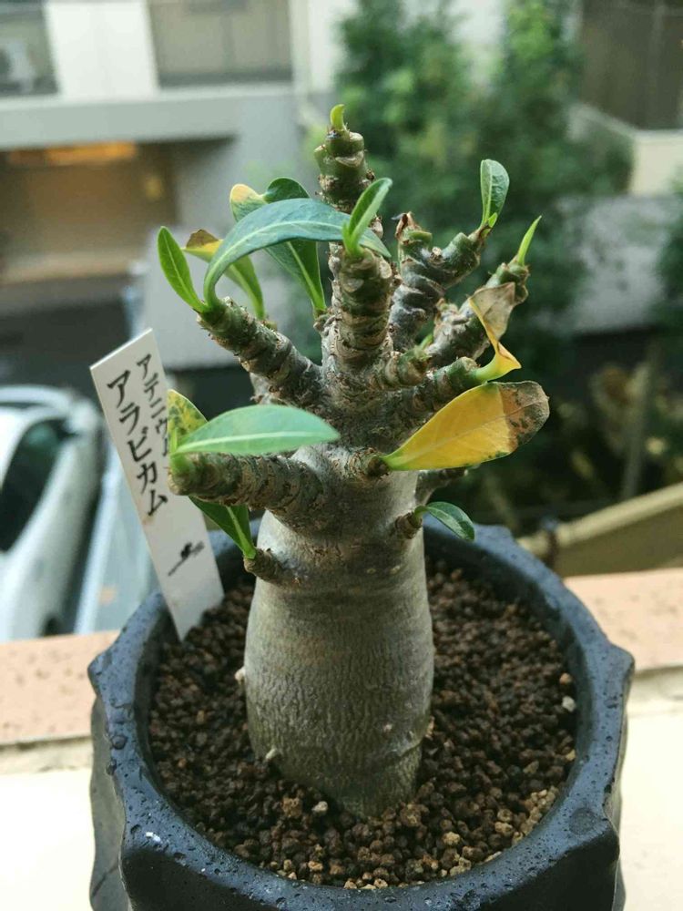 葉が変色して落ちてしまったアデニウム、復活してきました!