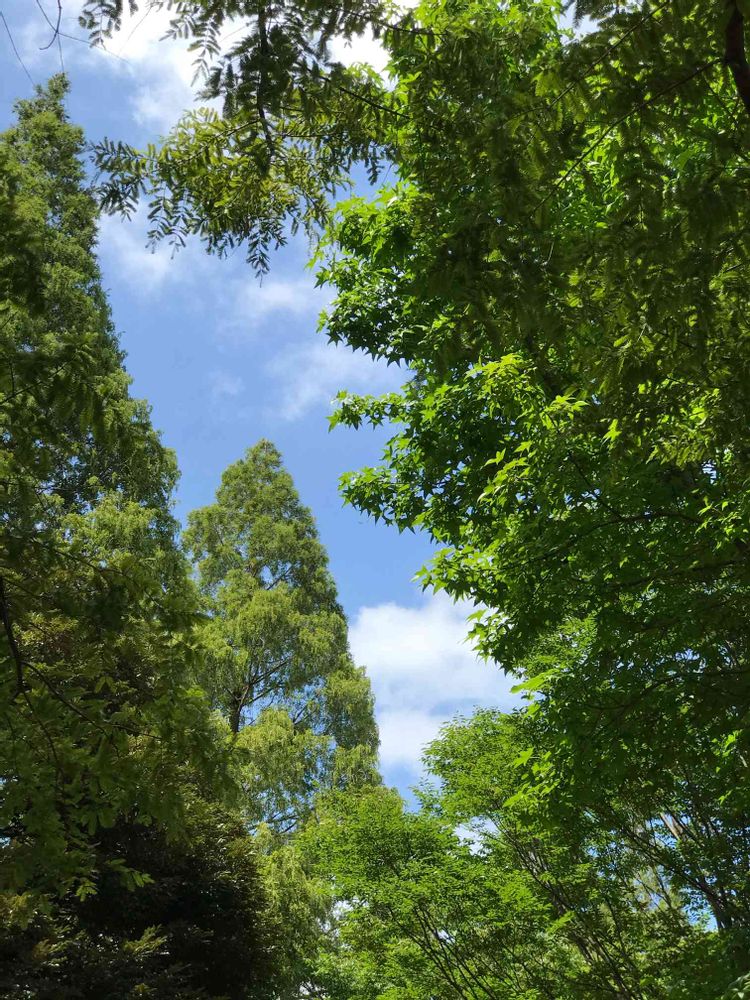 メタセコイアの隙間から青空。