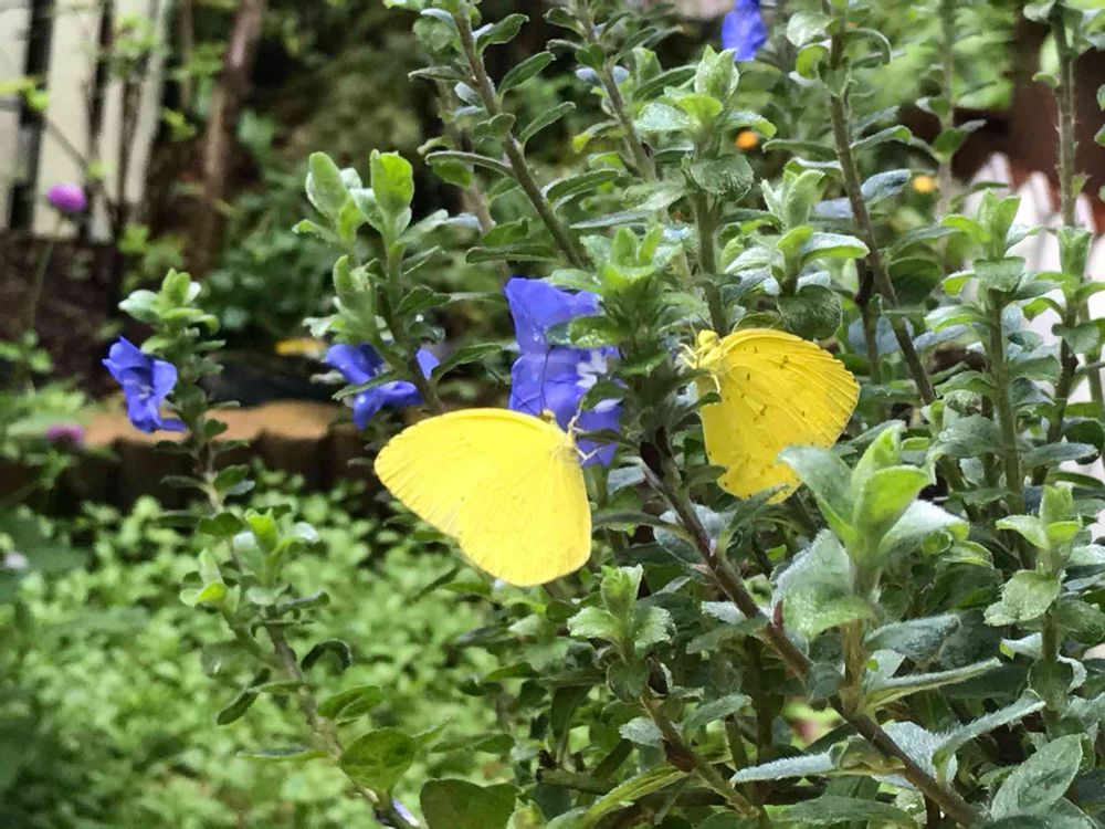 庭の花にとまってくれるだけでも嬉しいのに2匹?うらやましいです