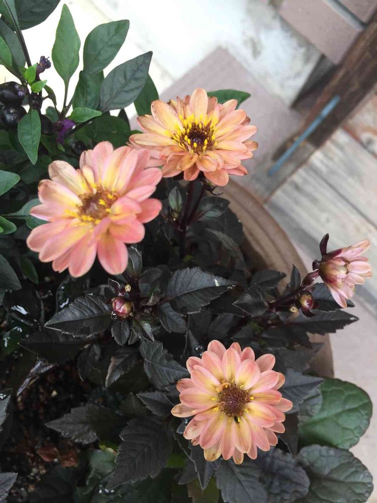 ブロンズの葉と優しいオレンジピンクのお花がいい感じ❣️