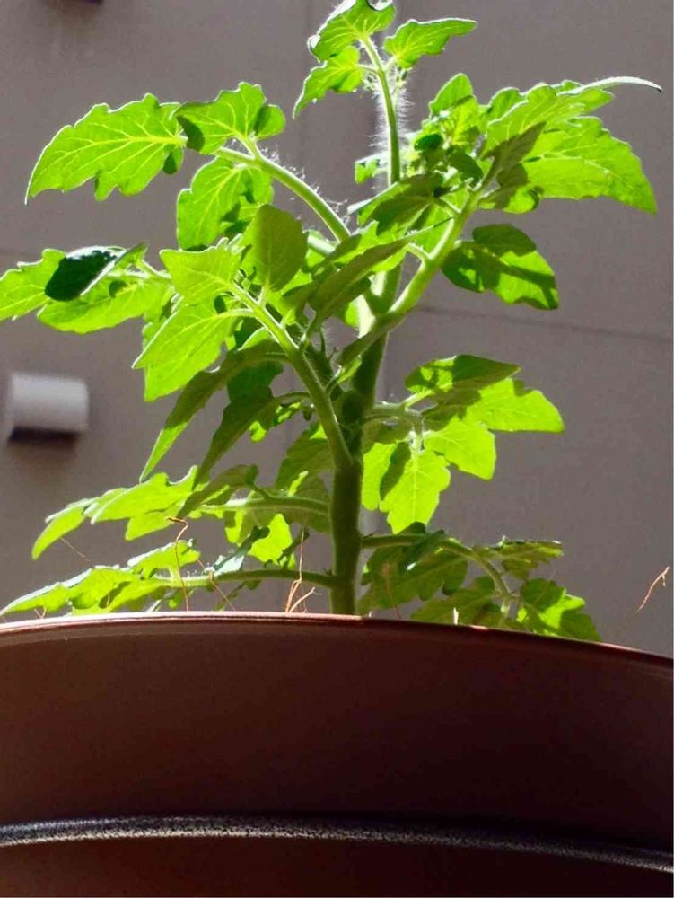 うちの地域には来ない予定だが大型台風襲来中の影響か、トマト株が雨だった昨夜一晩の間にいきなり茎がマッチョ化していた。
