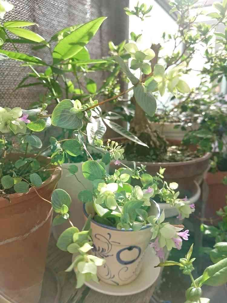 オレガノ ケントビューティ パキラ サツキ ハツユキカズラ ボケの葉もチラリ