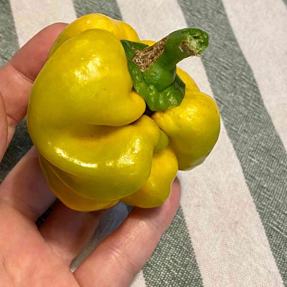 パプリカ初収穫❣️変な形の第二ジェネレーションですが、大事に美味しくいただきます🙏✨みどりのまとめみてね❤️