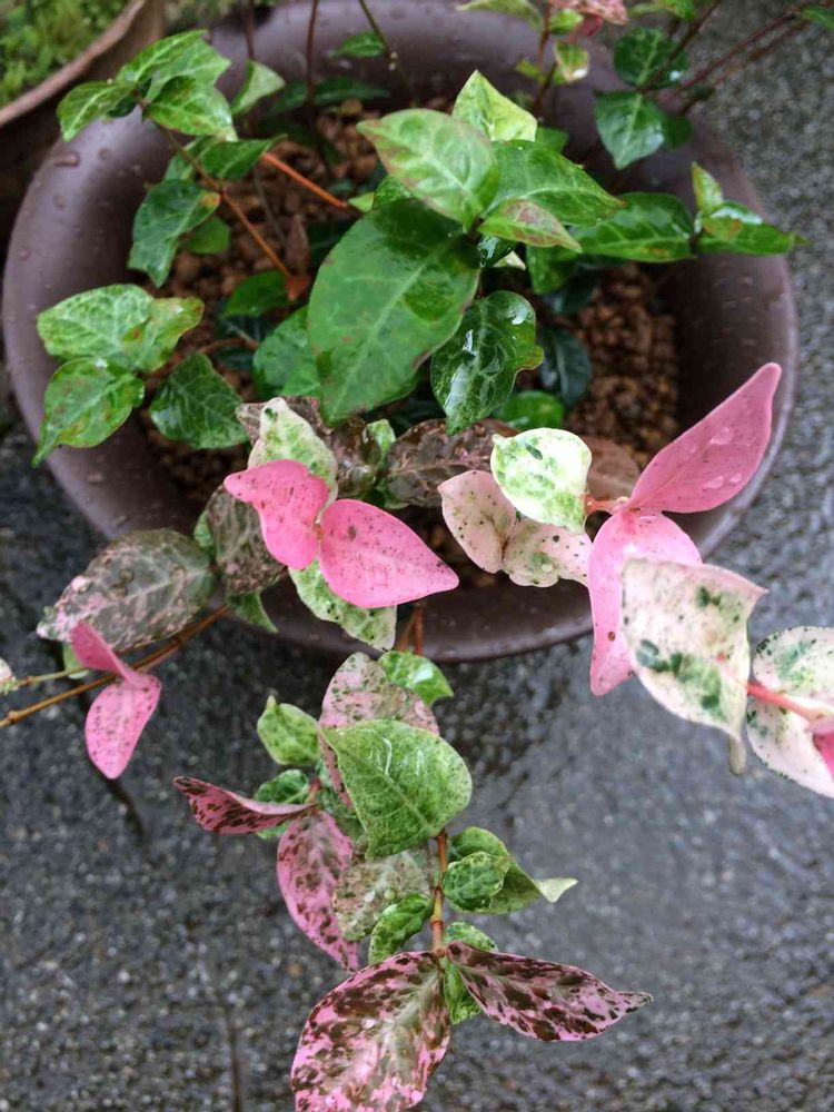 ハツユキカズラを安価で購入しました💕💕ピンクと白の組み合わせが可愛いかったので、💜💜ピンクの葉っぱが、新芽でそれから白、緑に変わるそうです。ピンクを多くしたい時は刈り込みをたくさんする方がいいそうです。花言葉は 素敵になって 😉だそうですよ💖💖💖