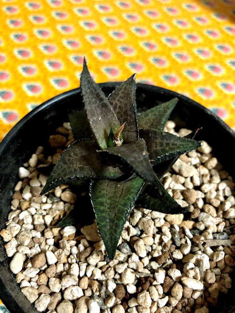 というびっくりエピソードがあるハオルチアヴェノーサさん。帝王鱗っていう名前もお素敵(*´꒳`*)夏に知らずに日に焼いてしまい、家の中にいたがようやく緑が戻ってきたー!これから緑になっていくの楽しみ!!