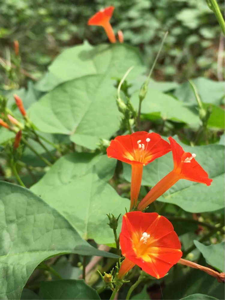丸葉縷紅。熱帯アメリカ原産。江戸時代に観賞用に帰化した。星形の朱赤色の花が咲くルコウソウに似ているが、切れ込みの多い葉(縷とは細い葉を指す)ではなく、丸い葉を持つ侵略的外来種。ヒルガオ科ルコウソウ属だったが、いまはサツマイモ属になった。