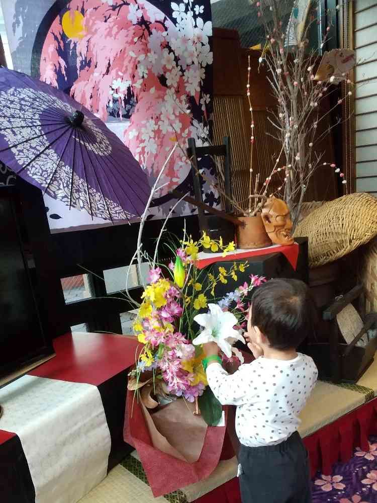 旅館の造花にも興味深々で、ホントにお花好きなんだなーって思った1枚😁🍀✨