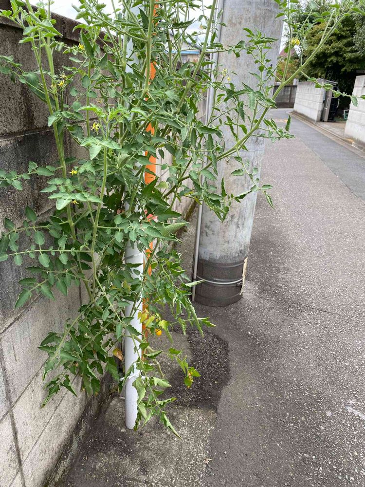 コンクリートの隙間から生えてるトマトは初めて見ました😂