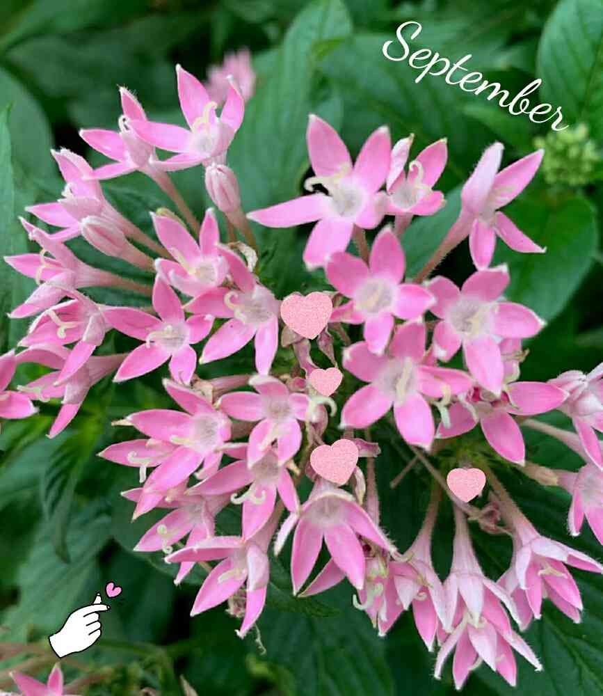 ピンクの優しい色にシャープな星形の花束💐のペンタス。🌟