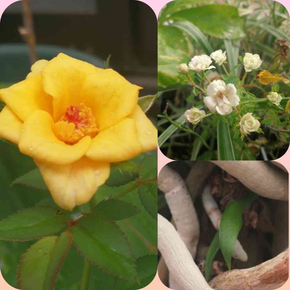 そんな我が家の庭の黄色ミニバラ、一回り小さくてなって開花です☺️