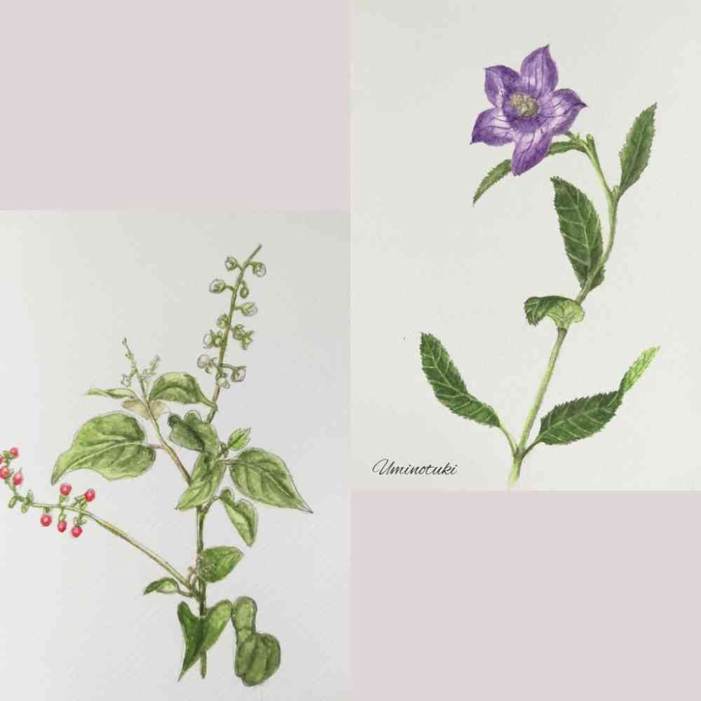 キキョウ 特に花の形の影付けの 描き方を先生にならいながら、お手本の本を見ながら 描きました〜