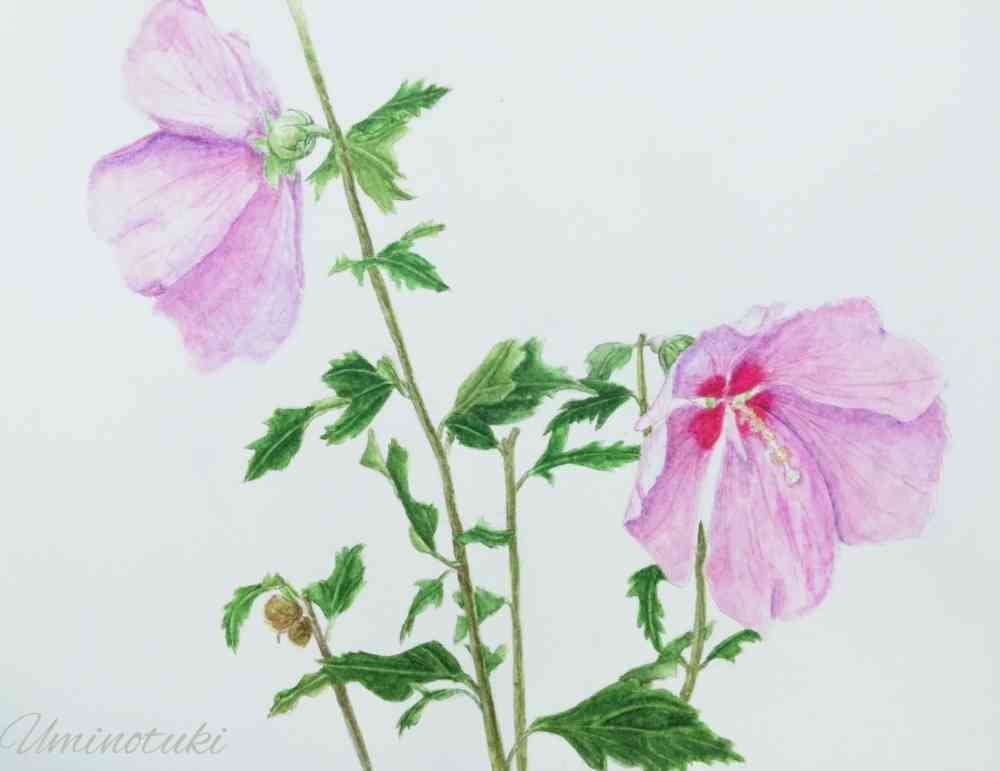 海の月さんのデスク,ムクゲ,透明水彩の投稿画像