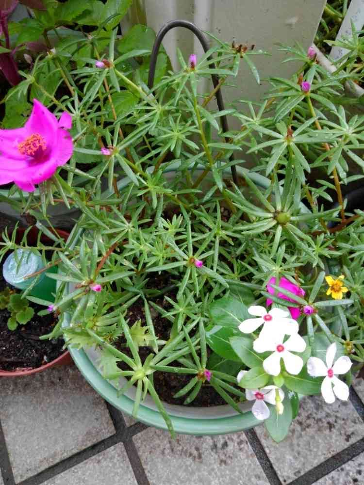 ジニア、ニチニチソウ、マツバボタンは挿し芽、姫マツバは一人生え