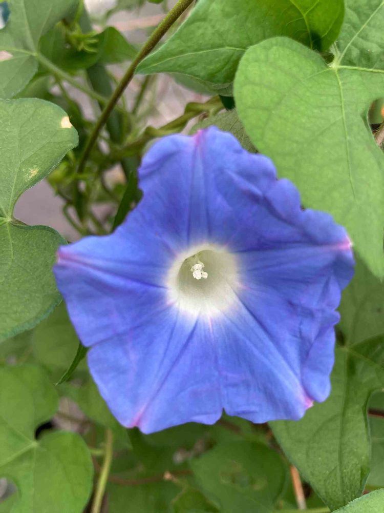 🏷青い朝顔マニアタグ付けます、物干しの下に毎年咲きます、植えた覚えないけど小さな朝顔です🌱