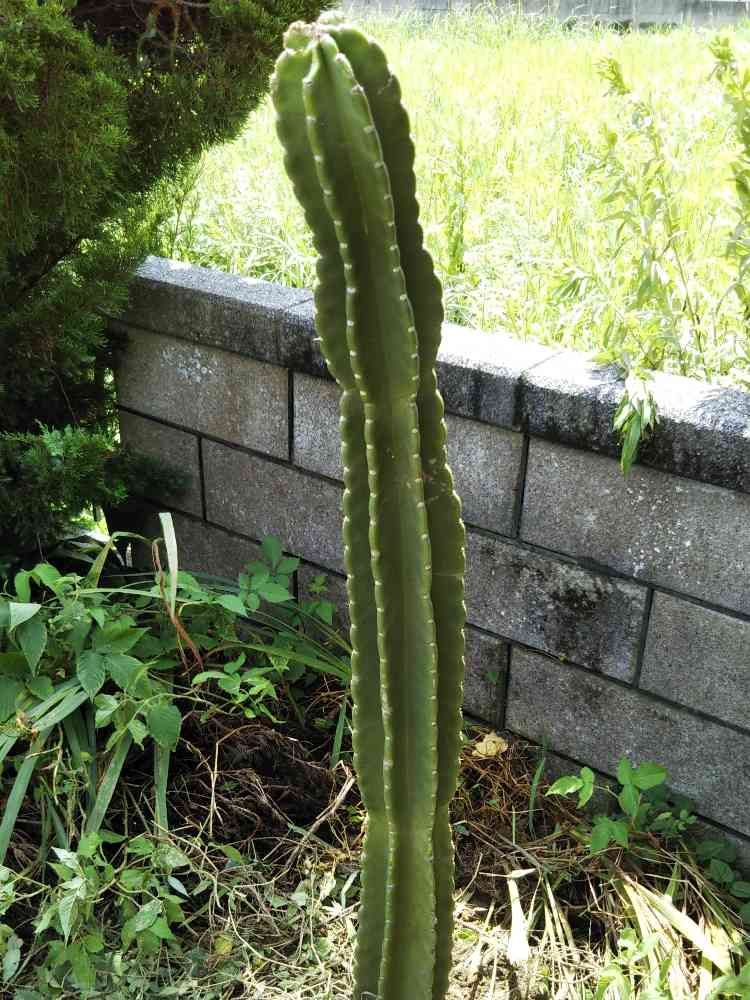 旦那さんがお客さんから柱サボテンもらってきてくれたので、柱サボテンの地植えは、巨大になるから絶対ダメと言われ続けてましたが、植えていいよと言ってくれたので、植えてみました☺️1m30cmぐらいでした。