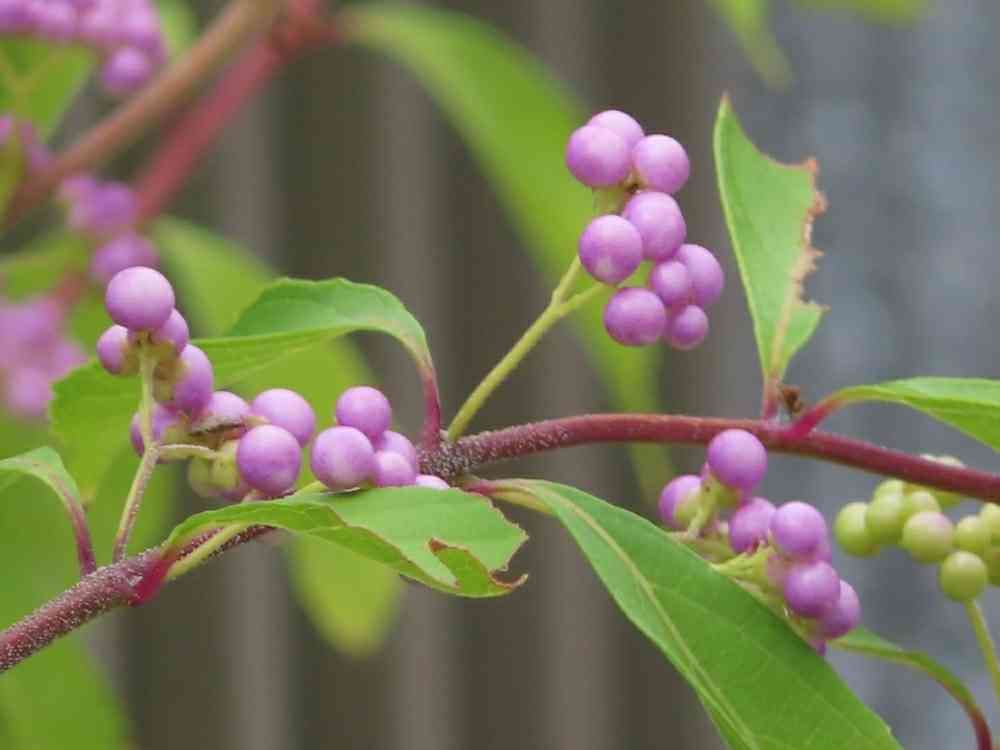 ご近所の庭先、コムラサキの実が綺麗に色付き始めていました。