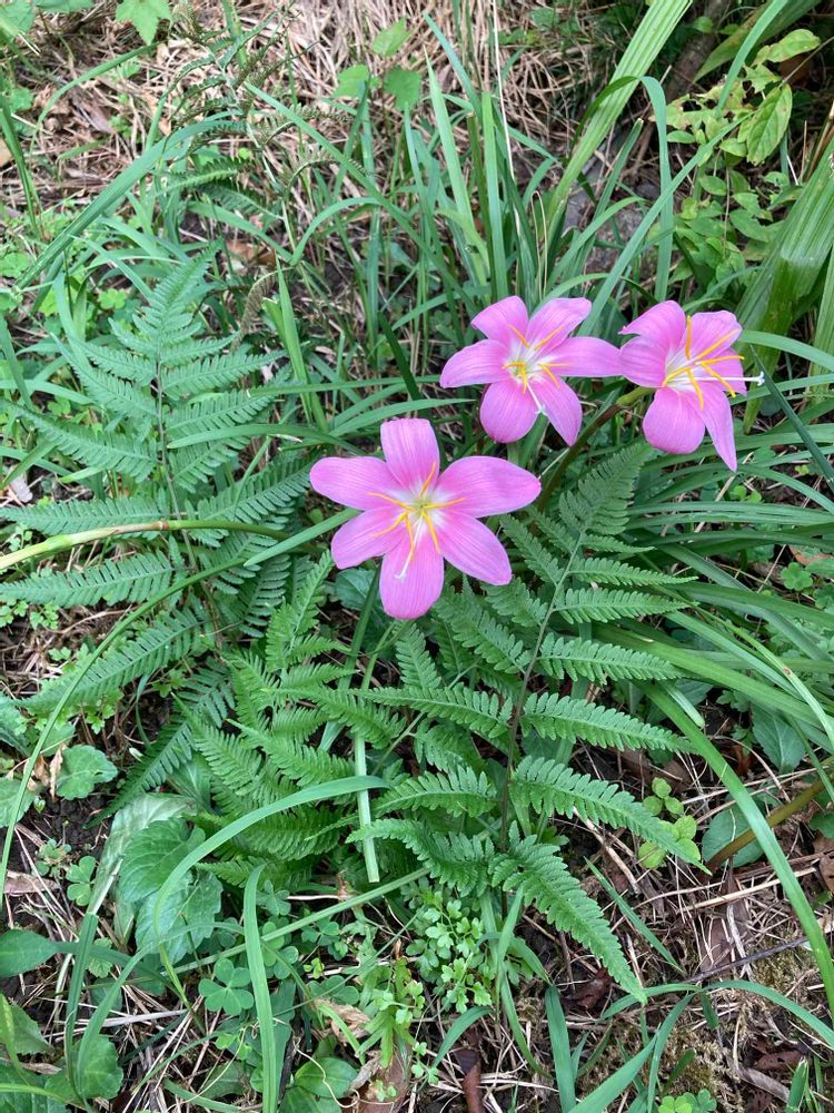 シダがゼフィランサスを引き立てていますね。あ!ちっちゃいカニクサもはえてるね🎵