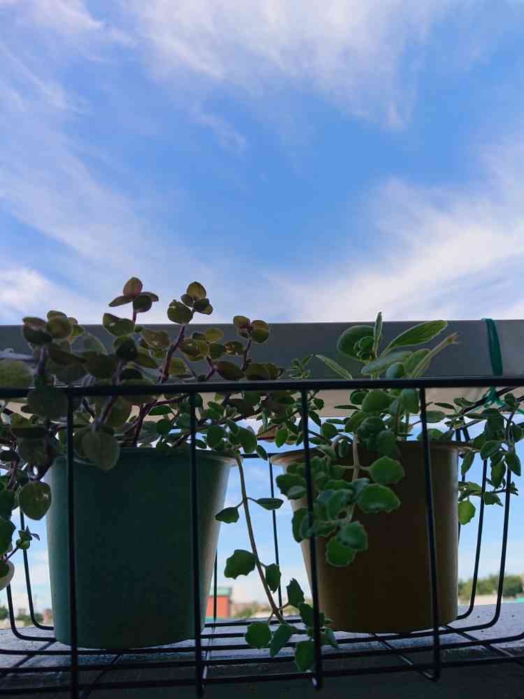 プラントハンガーのカリシアさんに続き、別鉢のカリシア&プロストラーツスもいよいよ収集つかなくなってきたのでちょっとお引越しして、ベランダ手すりにくくってみました。ネジネジかっこ悪いけど😅
