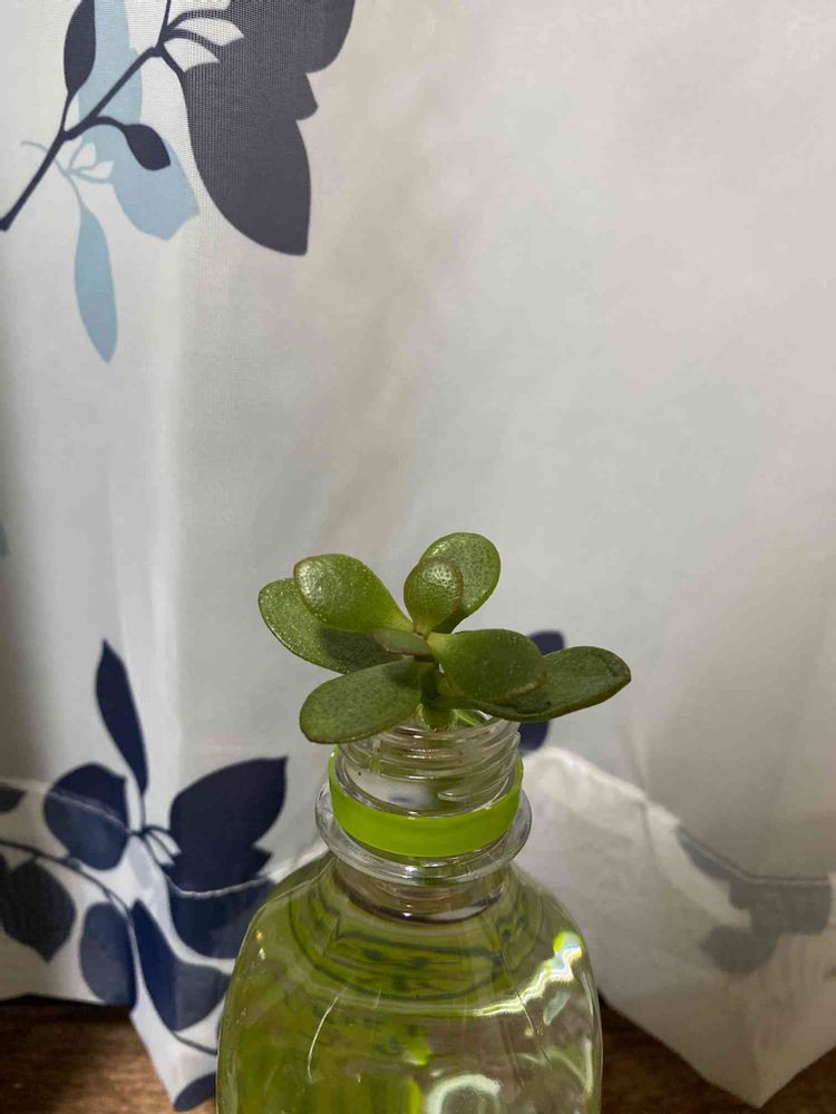 挿木にしてたら根っこが生えて育つって言ってたけど短い根っこは生えたけどぷりっとした可愛らしい葉がしわくちゃになってきよるので水に挿してみました。