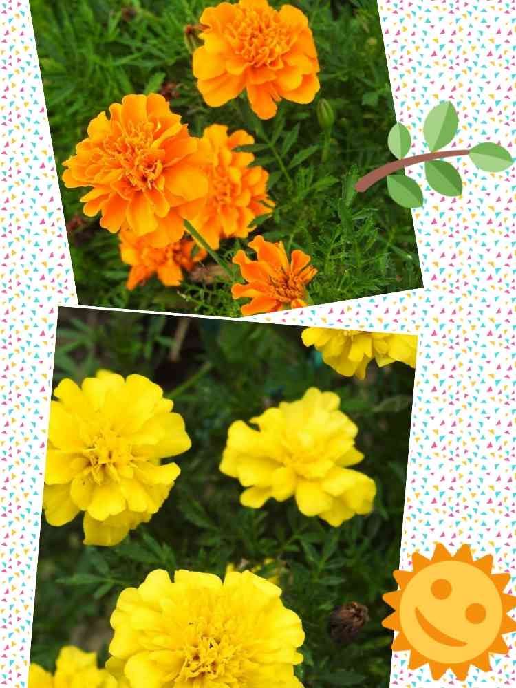 公園⛲の花壇で咲く🌻🌺マリーゴールドの花🌺🌻