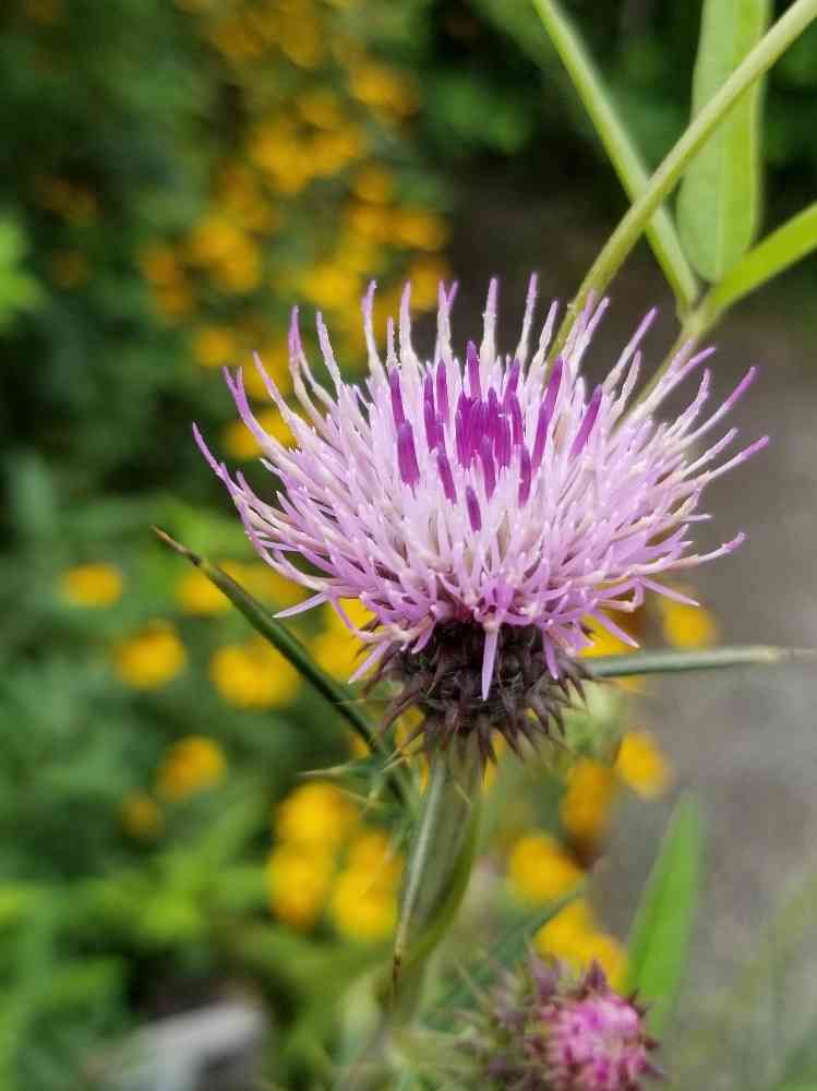 アザミの中心に薄赤紫が入っていてかわいいですね。何アザミでしょうか。