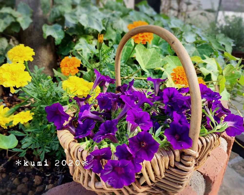 カゴ🧺に入ったサフィニア💜最後まで可愛くされてますね♬*.°