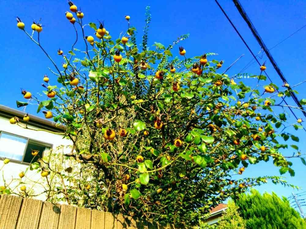 ローズピップが沢山、塀から覗いていました。