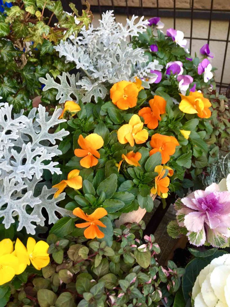 色んな色のお花とグリーンの寄せ植え、いいね💠🌴🌷