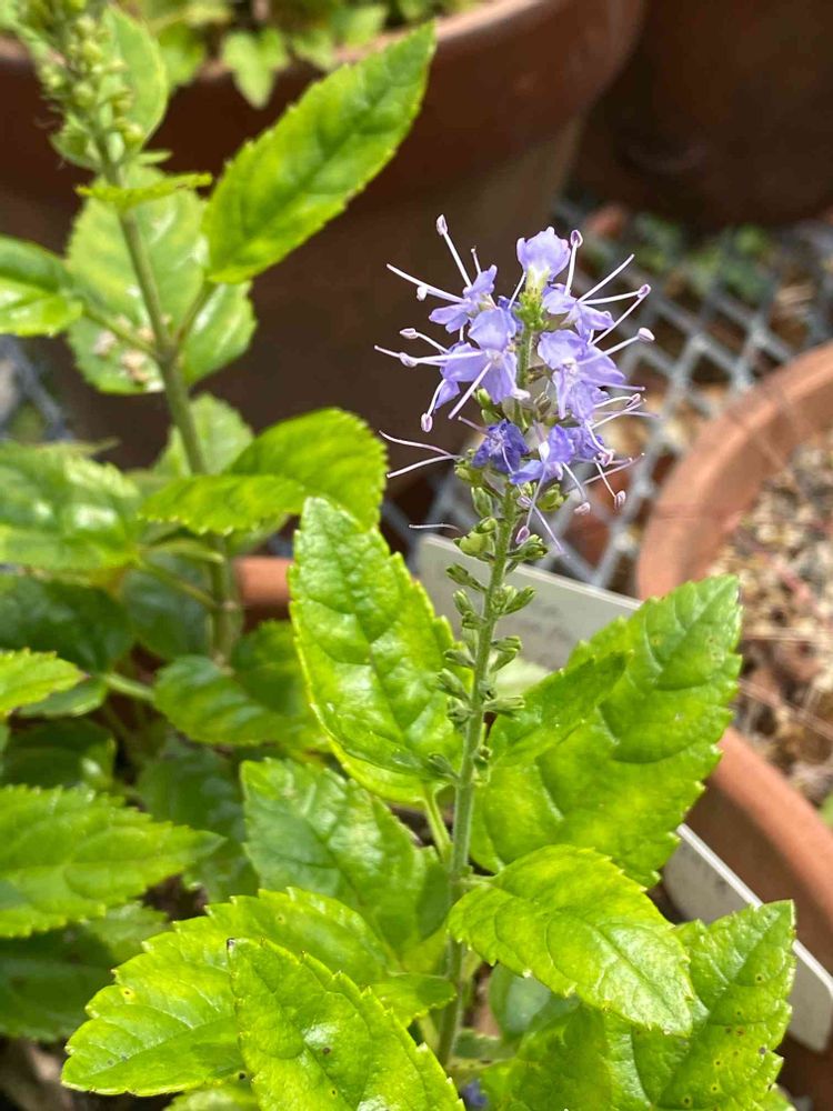 温室前の植木鉢にありました。栽培途中のようです。札に鉛筆書きでスペルが書いてあったので、カタカナ読みして