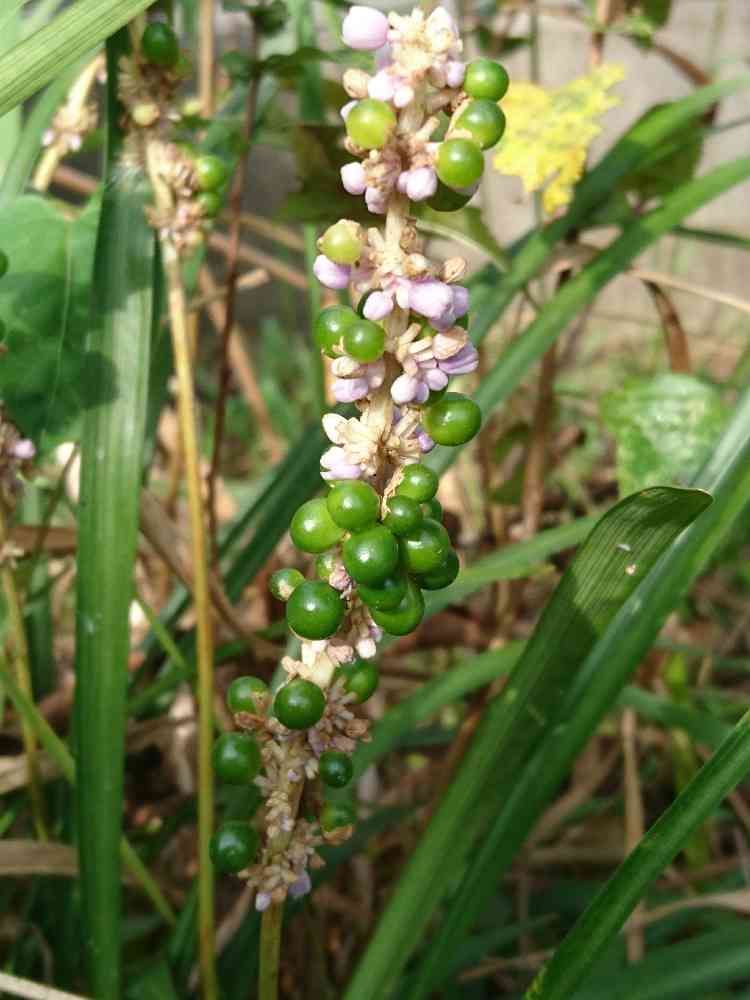 先日放ったらかしの裏庭の草取りしてて植えた覚えのないヤブランが‥