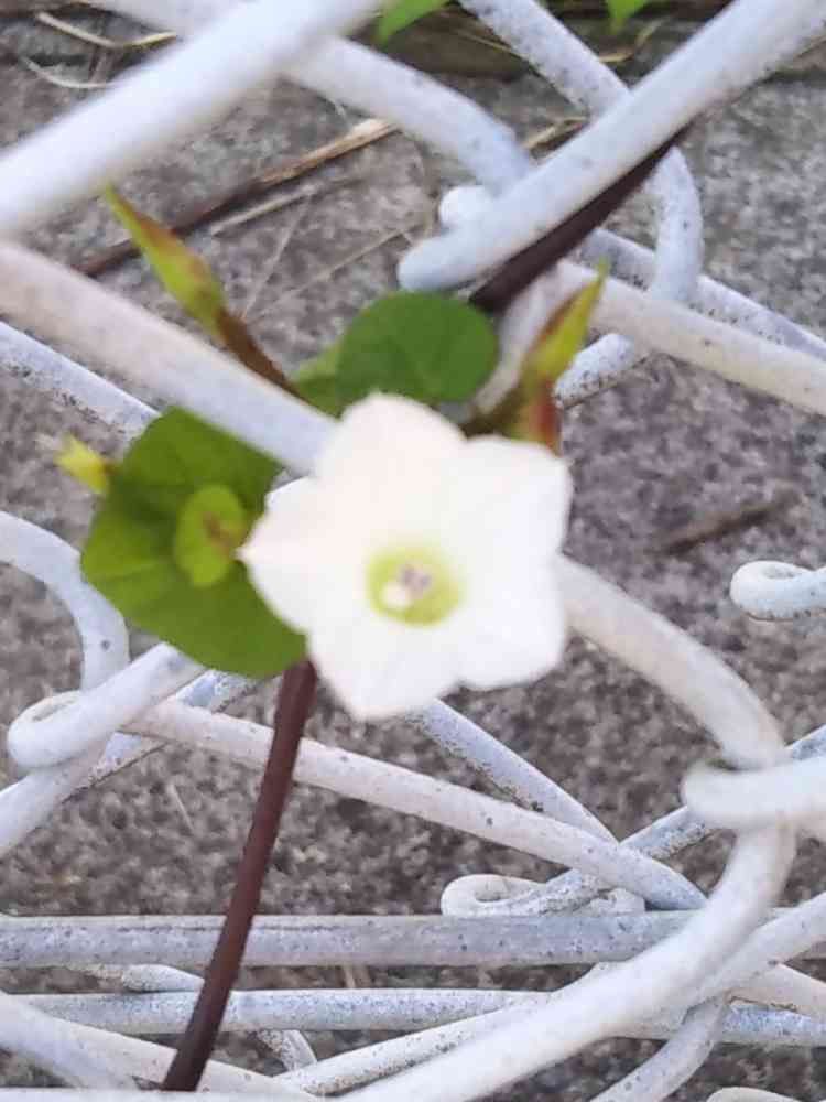 散歩道のフェンスに、蔓を絡ませて小さな白い花が咲いていました。何というお名前でしょう?