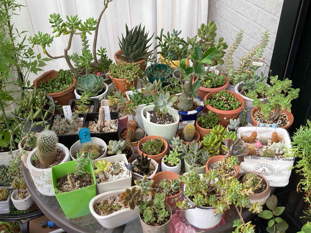 これは多肉さんだけで他の鉢はサンルームに所狭しと避難させて植物園みたいになっててこれを機に鉢減らししようと思いました😅